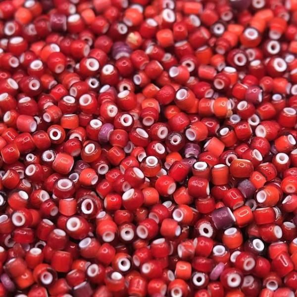 8サイズ イタリア アンティークシードビーズ Red with Lt.Rose White Hearts
