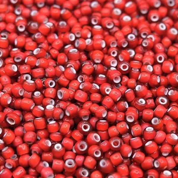 8サイズ イタリア アンティークシードビーズ Dk.Rose White Hearts