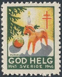 キャンドルの温かい光に包まれたツリーとおもちゃ。緑とオレンジが鮮やかな一枚です。シールのサイズ:縦29×横25mm