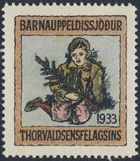 もみの木を抱え、何かを見つめている哀愁漂う少年です。レトロな色合いです。