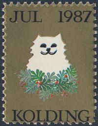 デンマーク・ユトランドに位置するKolding(コレング)のクリスマスシール。にっこり!!ちょっぴり太った白猫くん。