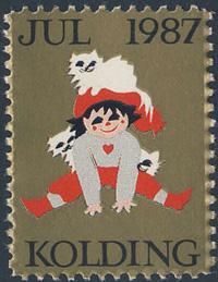 デンマーク・ユトランドに位置するKolding(コレング)のクリスマスシール。猫も男の子もみんなにっこり笑っています。