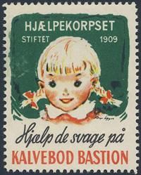 デンマーク・コペンハーゲンの街KALVEBOD-BASTIONのクリスマスシール。お目めぱっちり、おさげ髪の女の子。笑顔に力強さを感じます。