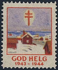存在感のある小さな小屋とロレーヌ十字。シールのサイズ:縦28×横23mm