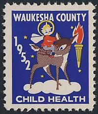 アメリカ ウィスコンシン州・ウォーキショーのクリスマスシール。バンビに乗った小さな王子様!マントをひらり、どこへ向かうのでしょう。店長オススメのデザインです☆