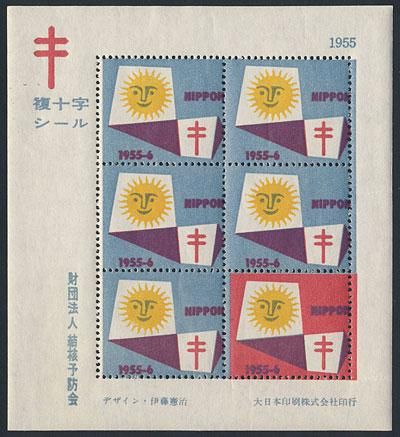 日本のクリスマスシールがシートで登場です。にっこり笑う太陽は、結核が撲滅されることを願っています。
