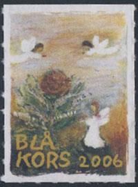 デンマーク・青十字社のクリスマスシール。青十字社は、依存症の人々を助ける団体です。ぼんやり描かれた天使が美しいです。