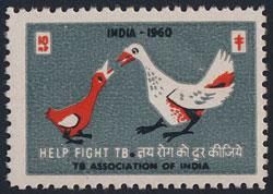 インドのクリスマスシールが登場!親子でしょうか、赤と白のガチョウがお話しています。