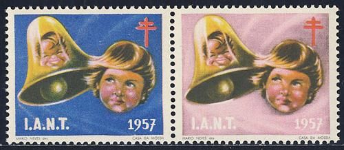 ポルトガルのクリスマスシールの登場です。インパクトのある女の子の表情!ベルにはにったり笑う赤ちゃん。もしかして、ケンカ中・・?