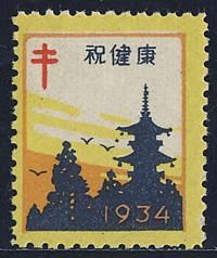古都奈良の五重塔。夕焼けとともに、美しい五重塔のシルエットが楽しめるクリスマスシールです。