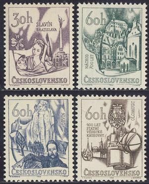 DEVINやOLOMOUCは都市の名前です。チェコスロバキアの文化都市についての記念切手のようです。