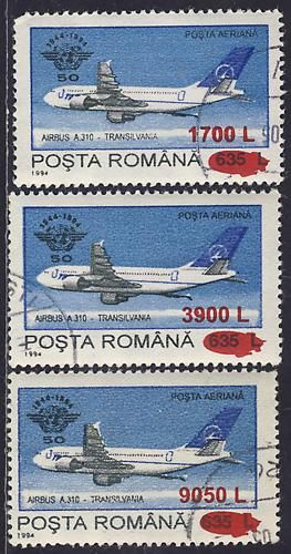 飛行機3種(加刷切手 使用済) ルーマニア'00