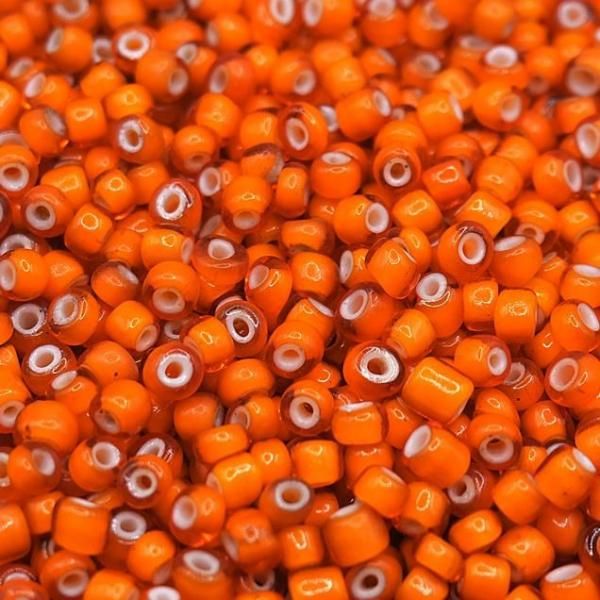 6サイズ イタリア アンティークシードビーズ Orange White Heart